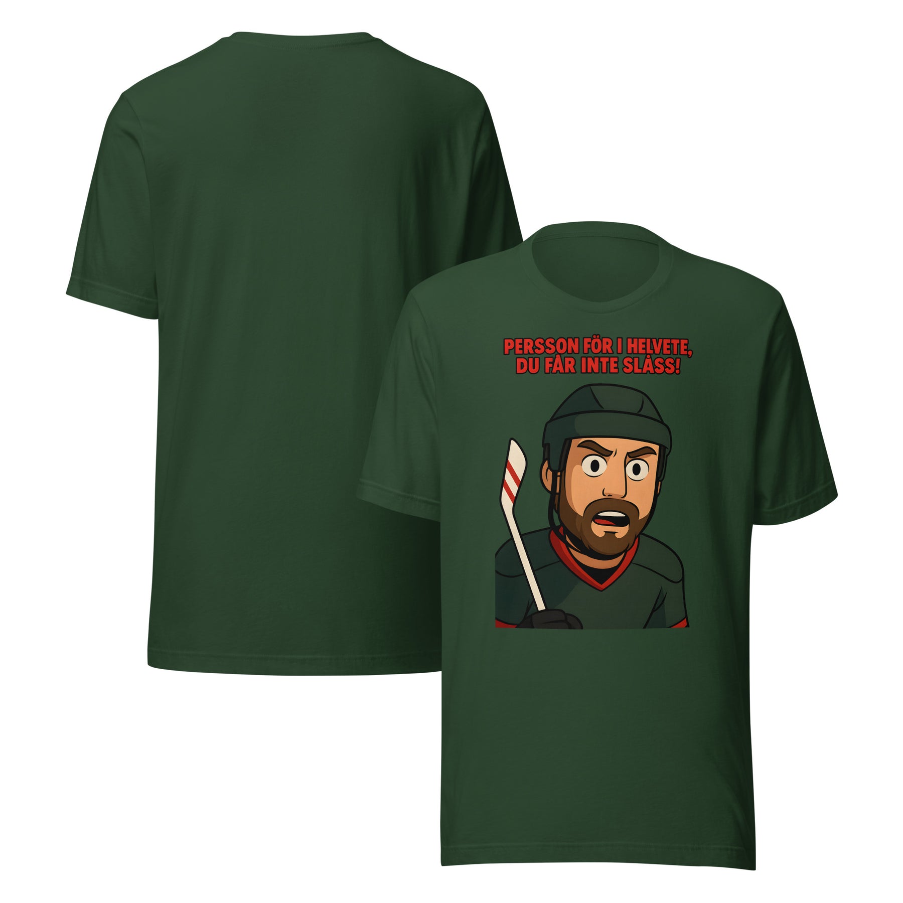 Detta spontana och humoristiska ögonblick blev snabbt ett folkkärt citat och en självklar del av svensk hockeyhistoria. T-shirten fångar exakt den energin – passionen, frustrationen och den älskvärda ärligheten som bara hockey kan framkalla.